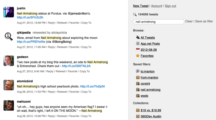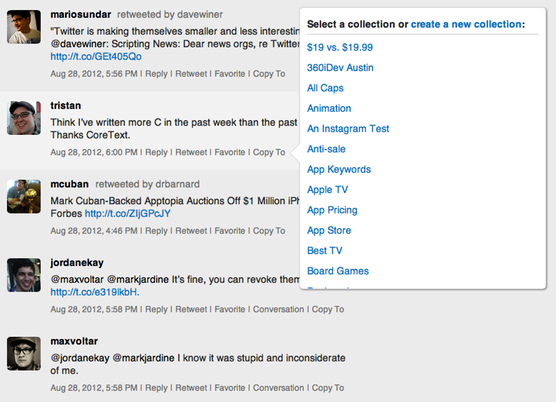 Plus it's got advanced features like grouping tweets in named collections, saved filters that can be shared, and Dropbox sync for easy exporting.